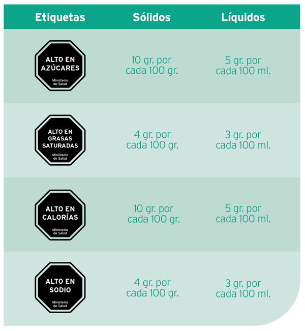 Es impor tante considerar que los “discos pare negros” representan 100gr. - ml. de alimento, no la porción recomendada, por eso para una correcta evaluación del producto, es importante revisar también su información nutricional.